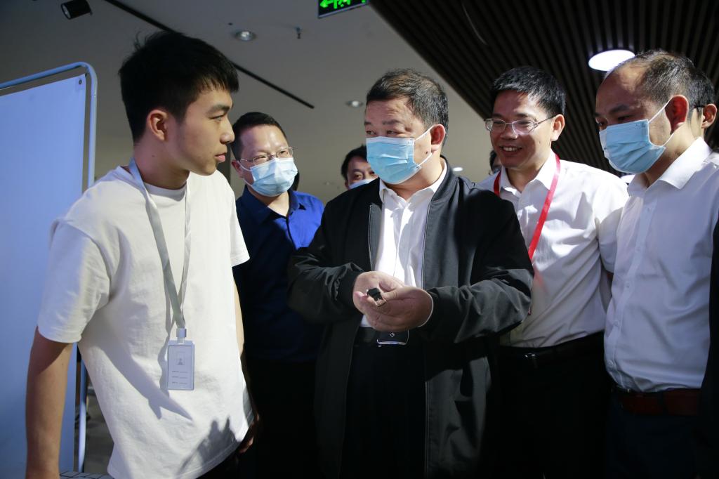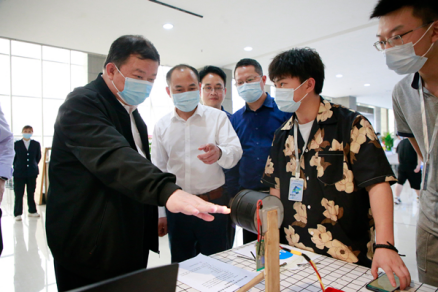 随后,刘望书记与大家合影并且仔细观看了毕业展作品,认真聆听同学们的现场讲解,与同学们进行亲切交流。刘望书记对学院通过举办电气科技节的形式解决实践教学、毕业生就业和校企合作等方面问题的举措给予了高度肯定,对电气科技节上员工展示出的科技创新能力和精神给予高度赞扬,希望电气科技节越办越好。