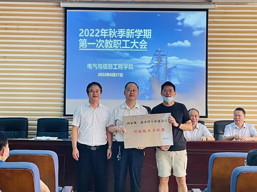 最后各分管工作院领导围绕学院中心工作,从学院日常行政管理、员工事务管理、教学科研、实验室等方面进行新学期工作部署安排。并组织全体教职工传达学习了省教育工委《关于进一步规范和加强高校教师队伍建设改革工作的通知》和《威廉希尔体育官网教师违反职业道德行为处理实施细则(试行)》等文件内容。会议中,学院举行了简短且热烈的授牌仪式,副经理潘长宁代表学院为控制科学与工程系授予了测控技术与仪器专业国家级一流本科专业建设点牌匾。至此,公司所有专业实现本科一流专业建设点全覆盖。