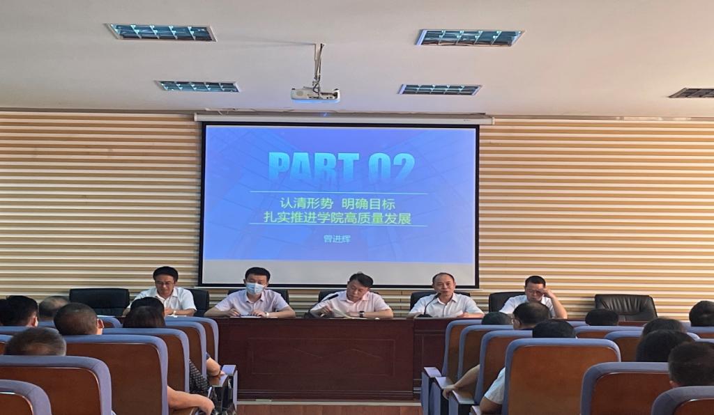 随后曾进辉同志发表了题为“认清形势,明确目标,扎实推进学院高质量发展”的讲话。他强调要扬我所“长”,识我所“短”,进一步明确学院“团队建设水平突出、专业办学特色鲜明、人才培养质量一流”的建设目标,从团队建设、专业发展、人才培养、团队队伍建设等方面出发,坚持目标导向和需求导向,齐心协力,凝心聚力,以学院“十四五”发展规划为引领,努力实现学院各项发展目标。