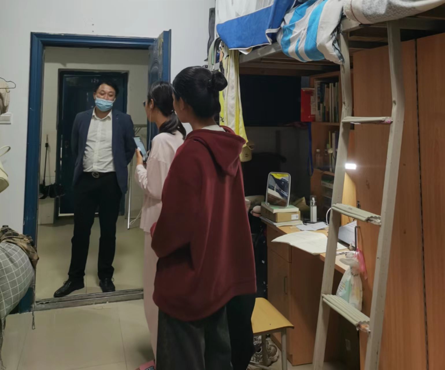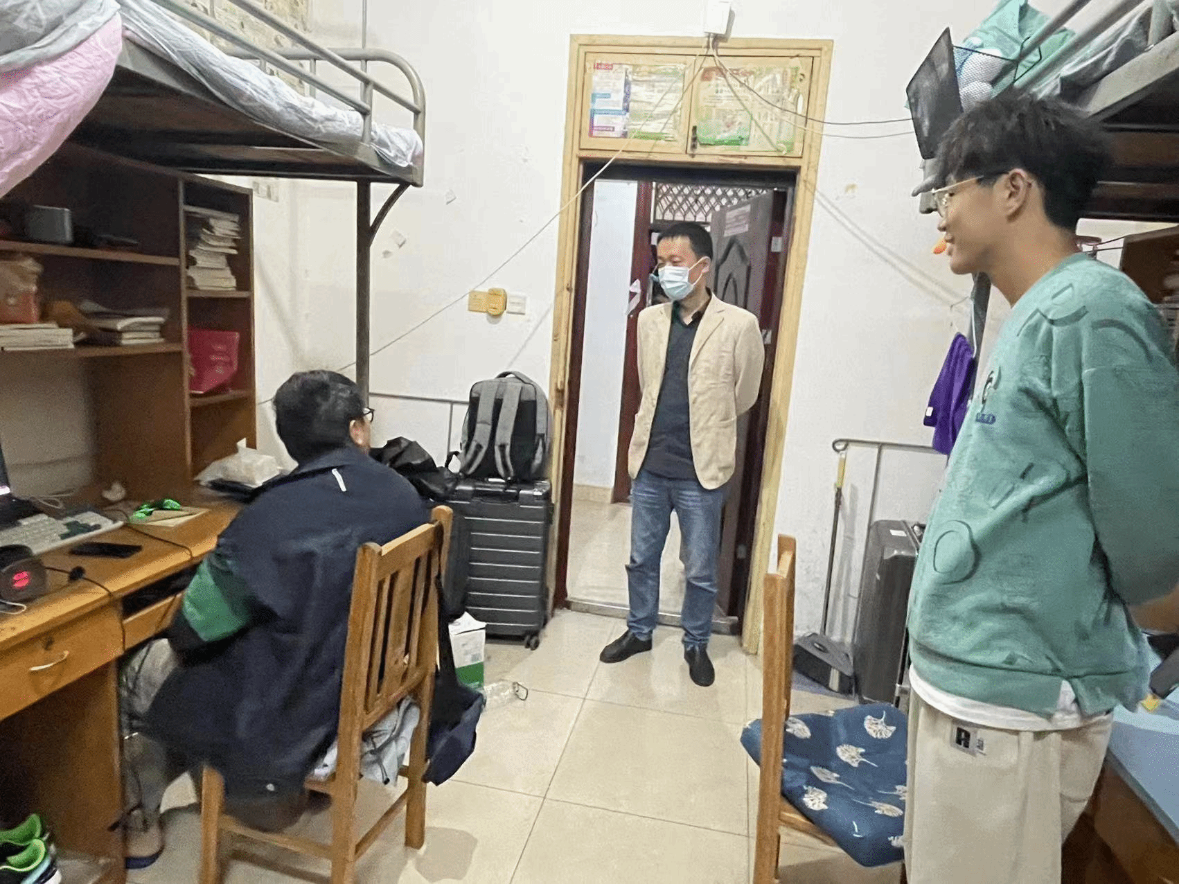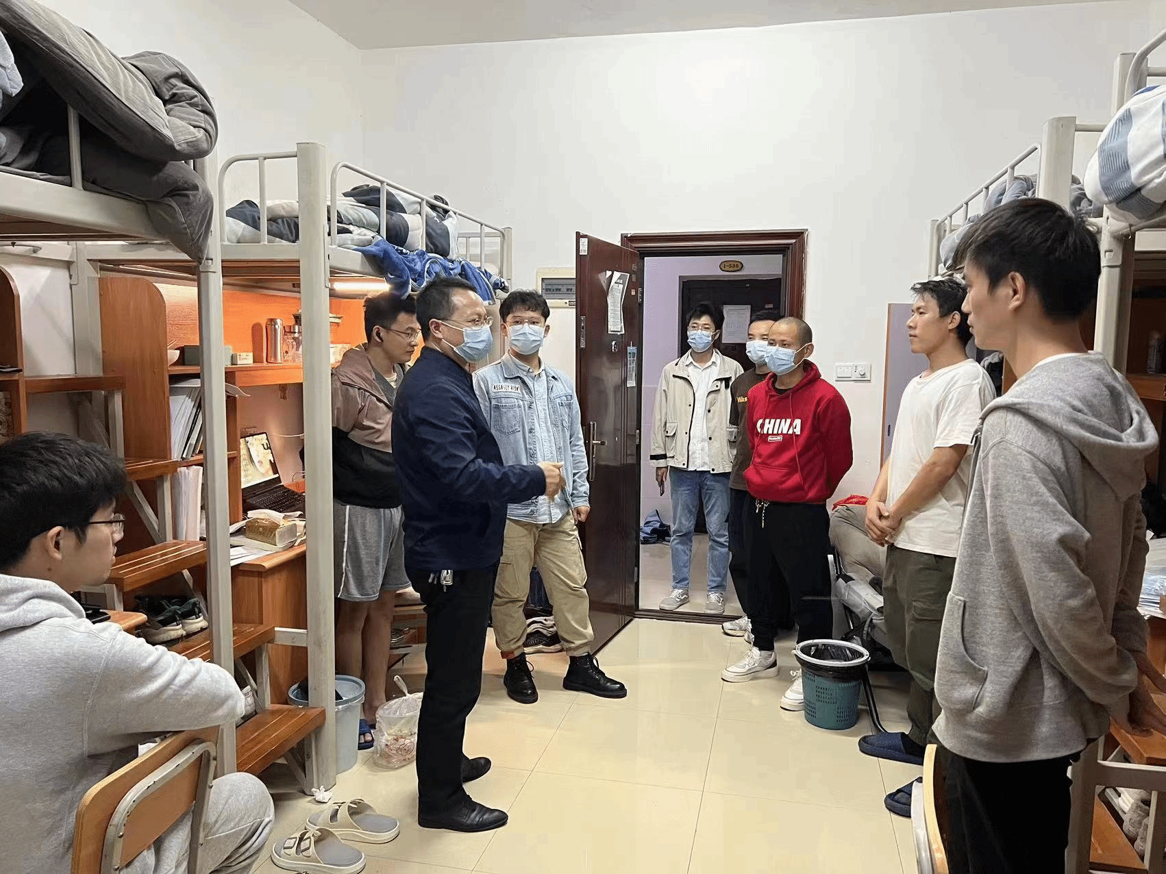 公司领导高度重视,针对同学们未能按时吃饭的问题,学院为员工们准备了泡面、水果等生活物资,积极联系员工和合作单位捐赠防疫物资和急缺物资,全天候值守现场下沉一线给予同学们关心与慰问。11月2日晚,学院领导深入员工各宿舍,询问员工们学习、生活方面的情况与问题,有针对性地给予员工们建议,并详细解释了株洲市疫情防控政策,叮嘱员工们做好个人防护,齐心协力,共克时艰。