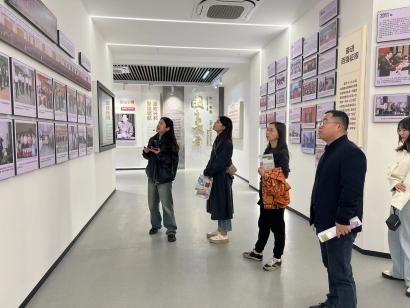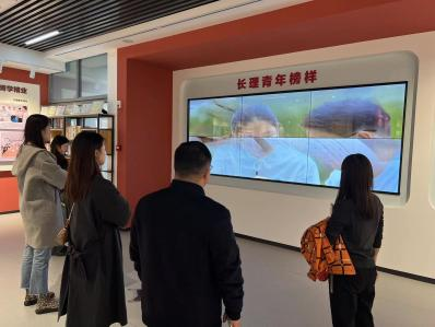 随后,调研队一行走进长沙理工大学“三全育人”教育基地,该基地以“立德树人,逐梦报国”为主题,既展现了党领导高等教育发展的历史进程,也展现了长沙理工大学“三全育人”的成果与特色。通过讲解员的讲解,辅导员们较为全面的了解了三全育人基地场地设计、场馆布置、素材收集等方面的经验,同时,也上了一堂洗涤心灵的思政课。调研队一行还参观了该校员工社区“一站式”服务中心,并与相关值班负责人进行了交流讨论,重点交流了场地建设、中心功能、员工事务办理程序等情况。