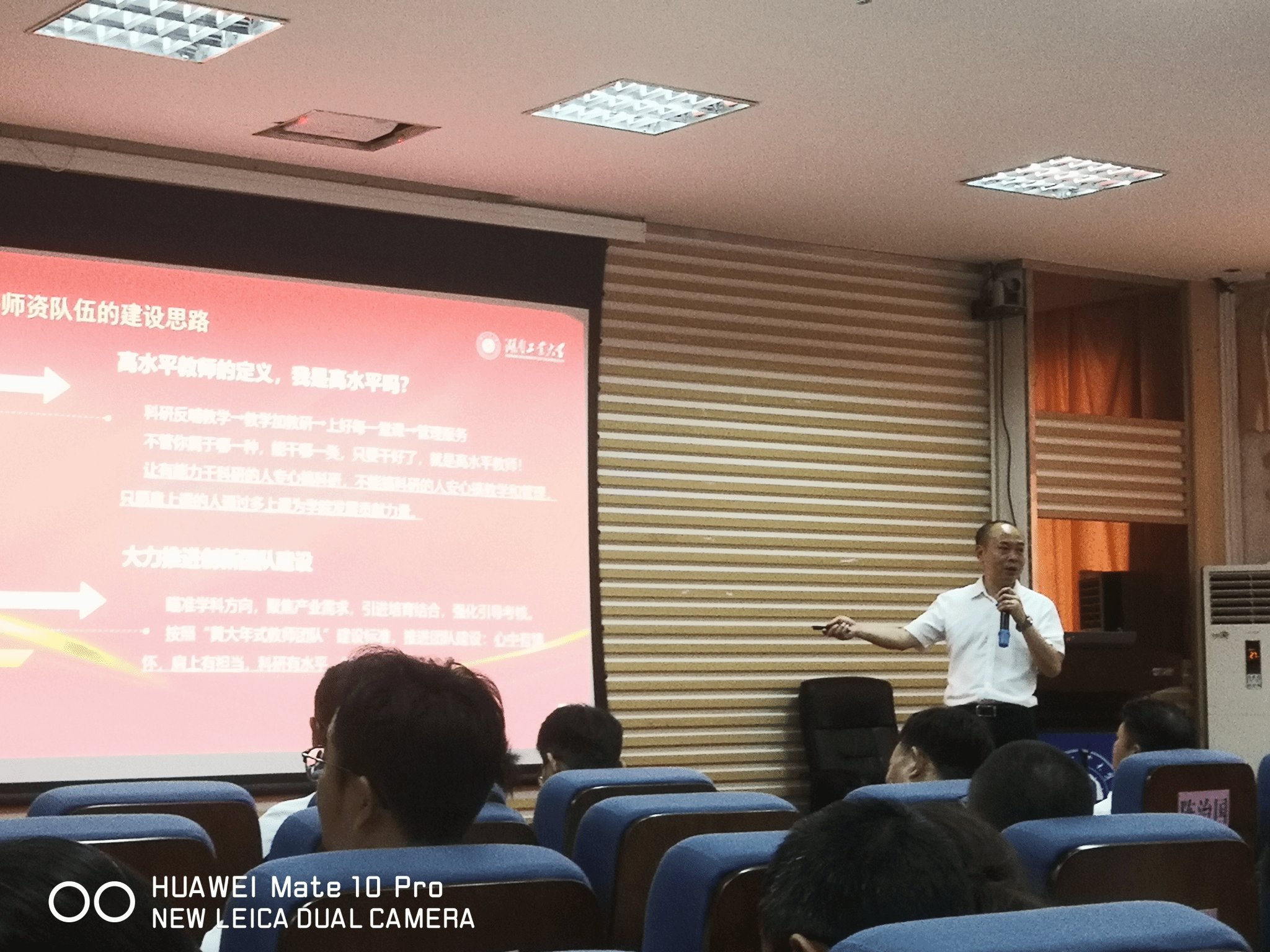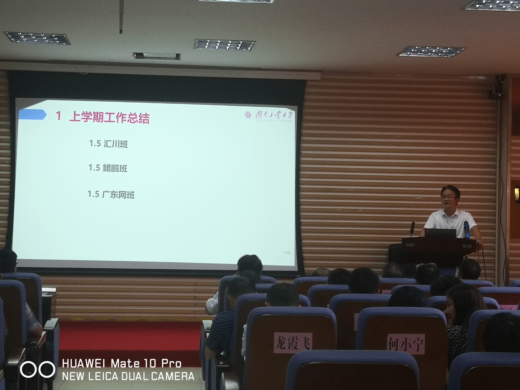 副经理潘长宁对上学期学院教学工作进行了总结,对部分教师在暑假期间所获教学荣誉、审核式评估工作扎实推进、专业认证自评报告顺利提交等工作予以了表扬和肯定,并对近期的教学工作做了详细的安排。